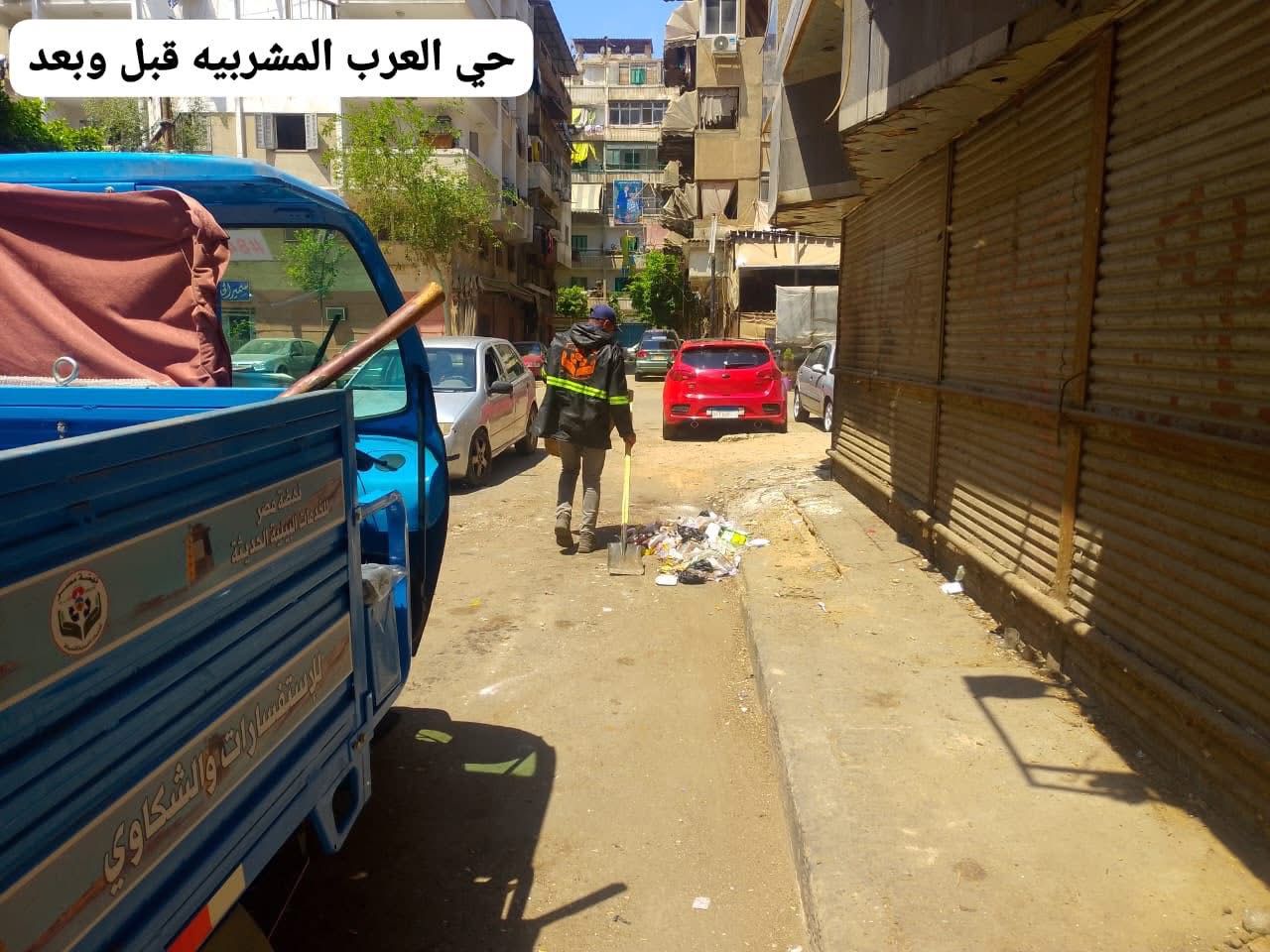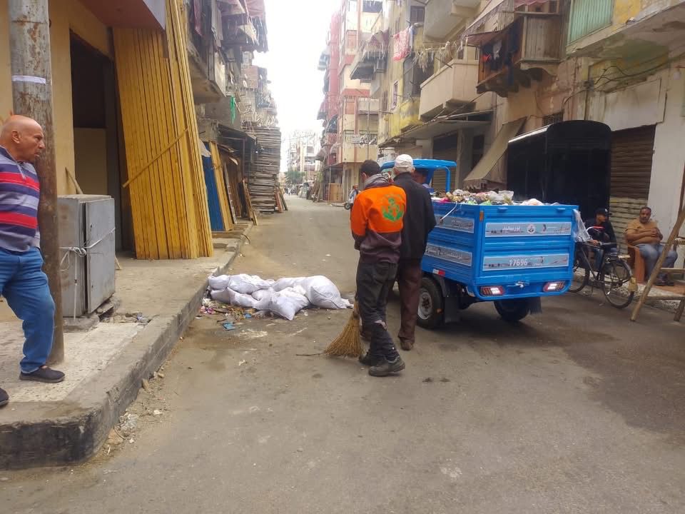 استمرار أعمال الجمع المنزلي وتجريف الأتربة للحفاظ على الوجه الجمالي للحي