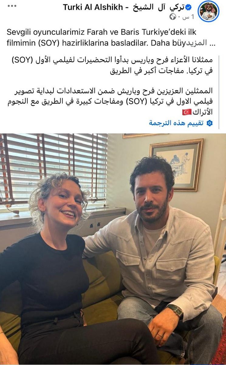 بطولة النجمين التركيين فرح عبد الله وباريش.. تركي آل الشيخ يكشف تفاصيل فيلم "SOY"