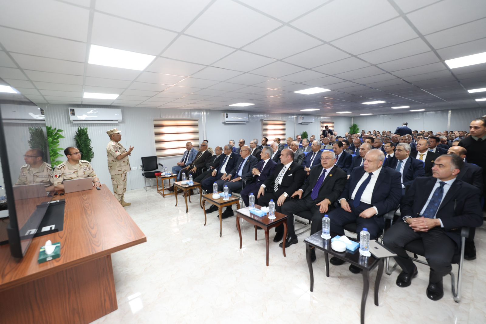 واستمع وزير العدل والحضور إلى عرض تفصيلي قدّمه اللواء أركان حرب أشرف نبيل الحسيني مساعد رئيس الهيئة الهندسية للقوات المسلحة، تناول الموقف التنفيذي الحالي للمشروع، ونسب الإنجاز في مختلف مكوناته، ومدى توافقها مع البرنامج الزمني المعتمد، بما يضمن تنفيذ المشروع وفق أعلى معايير الجودة والكفاءة، كما تم عرض فيلم تسجيلي حديث استعرض أدق التفاصيل الفنية والإنشائية للمدينة.