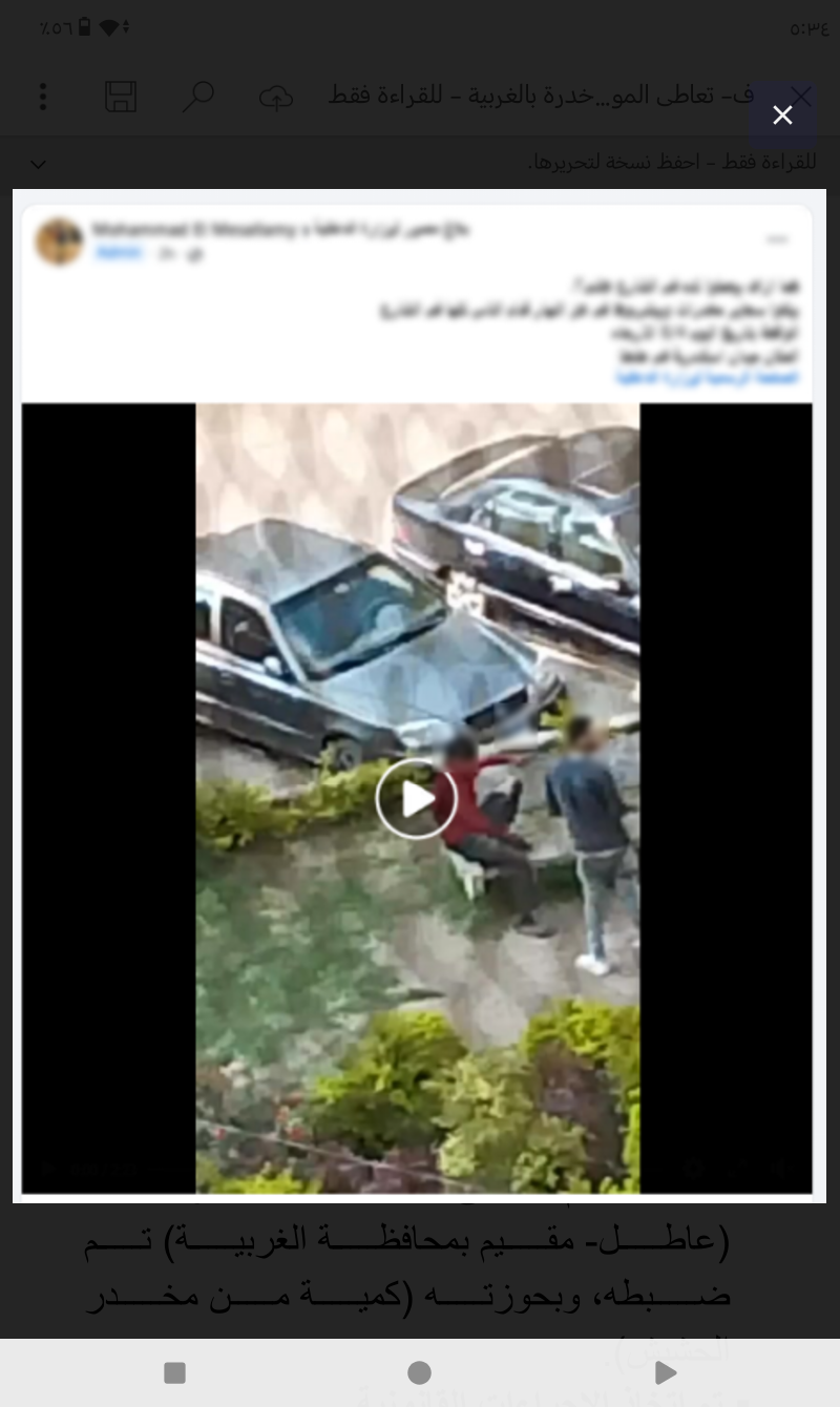 بالفحص أمكن تحديد وضبط الظاهرين بمقطع الفيديو (شخصان وسيدة "لـ 2 منهم معلومات جنائية" – مقيمين بمحافظة الغربية)، وبمواجهتهم إعترفوا بإرتكاب الواقعة على النحو المشار إليه، وتحصلهم على المواد المخدرة من (عاطل- مقيم بمحافظة الغربية) تم ضبطه، وبحوزته (كمية من مخدر الحشيش).