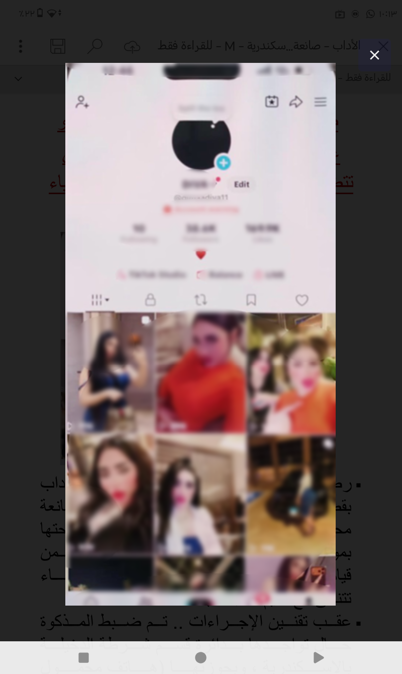 عقب تقنين الإجراءات .. تم ضبط المذكوة حال تواجدها بدائرة قسم شرطة الدخيلة بالإسكندرية ، وبحوزتها (هاتف محمول "بفحصه تبين إحتوائه على دلائل تؤكد نشاطها الإجرامى") ، وبمواجهتها إعترفت بقيامها بنشر مقاطع الفيديو المشار إليها على صفحتها بمواقع التواصل الإجتماعى لزيادة نسب المشاهدات وتحقيق أرباح مالية.