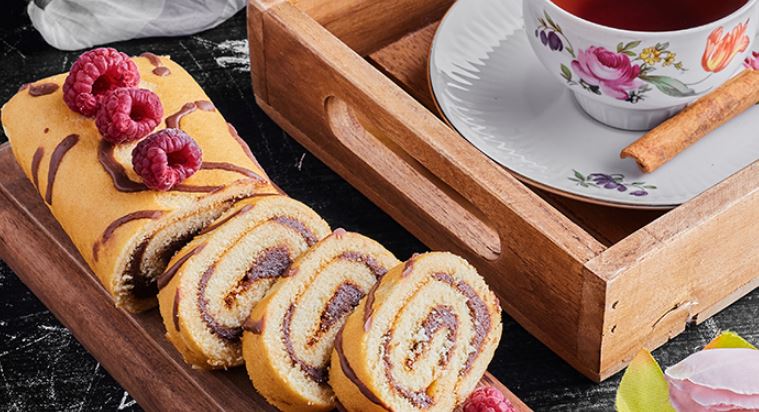 - يقطع رول الكيك بعد تبريده بسكين حاد مرة واحدة ويقدم.