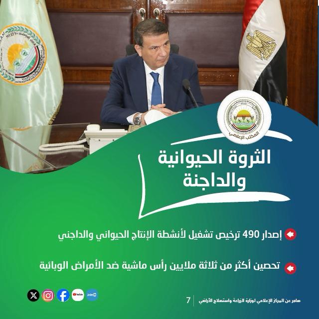 وشهد الأسبوع إصدار 490 ترخيصا لتشغيل مشروعات الإنتاج الحيواني والداجني ومراكز تجميع الألبان خلال النصف الأول من أبريل في إطار دعم الاستثمار وتنظيم القطاع