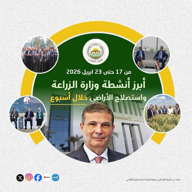 "الزراعة" تستعرض جهودها في دعم المزارعين وتحقيق الأمن الغذائي خلال الاسبوع الثالث من أبريل| فيديو وانفوجراف