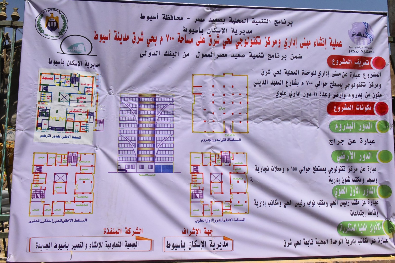 وخلال الفعاليات، استمع المحافظ إلى شرح تفصيلي من وكيل وزارة الإسكان، أوضح خلاله أن المشروع يأتي ضمن برنامج التنمية المحلية بصعيد مصر والممول من البنك الدولي، ويستهدف توفير بيئة مناسبة وآمنة للحصول على الخدمات الإدارية بسهولة ويسر. وأضاف أن المشروع يُقام على مساحة 700 متر مربع بجوار مرسى حورس النهري بشارع المعهد الديني، ويتكون من بدروم وطابق أرضي و11 دورًا علويًا، ويضم مركزًا تكنولوجيًا بمسطح 155 مترًا مربعًا، إلى جانب مكاتب إدارية تقدم مختلف الخدمات للمواطنين، فضلًا عن مسجد ومحلات تجارية، بتكلفة تقديرية للمرحلة الأولى تبلغ نحو 35 مليون جنيه، على أن يتم الانتهاء من التنفيذ خلال 10 أشهر.