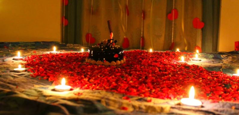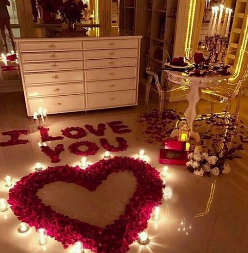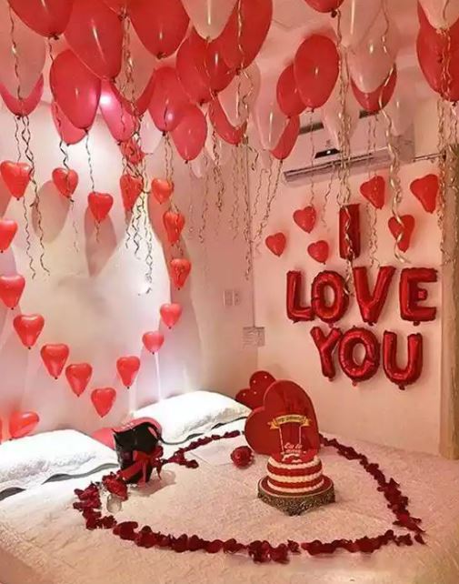 6. زيّني غرفة النوم بشكل يشبه غرفة الطعام، مستخدمة البالونات، الشموع، والورود الجافة إضافة إلى تنسيقها بأناقة.
