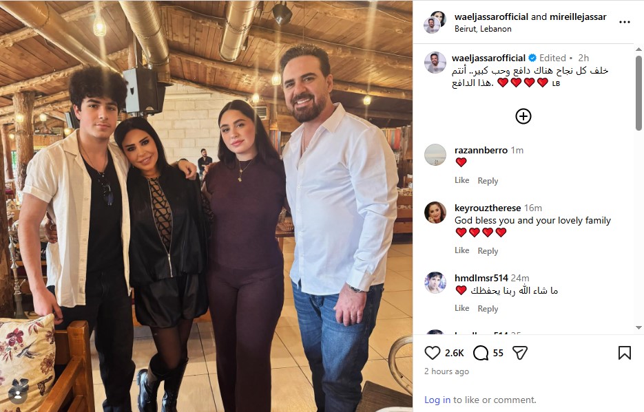 وجه الفنان وائل جسار رسالة إلى عائلته، مشيرًا إلى أنهم الدافع الوحيد وراء نجاحه الملحوظ، ونشر صورة تجمعه بزوجته ميري جسار وابنائه.