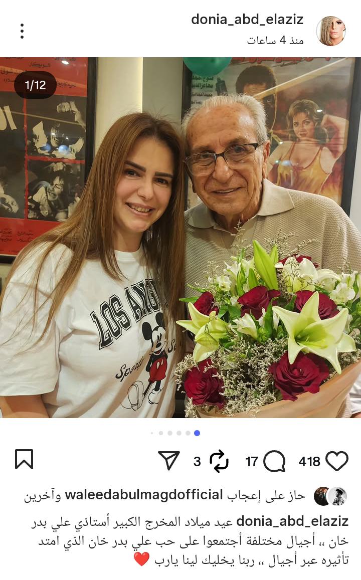 رسالة تقدير من دنيا عبد العزيز للمخرج الكبير علي بدر خان في عيد ميلاده
