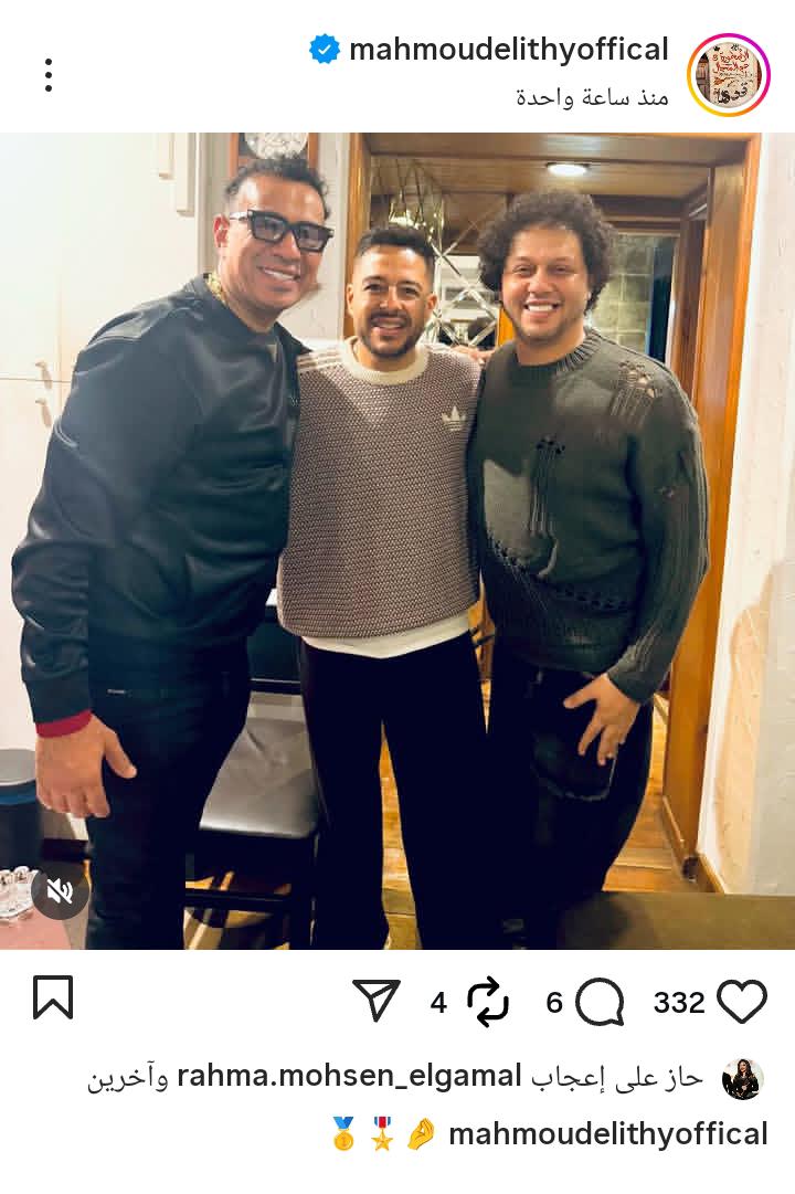 ونشر محمود الليثي الصورة عبر حسابه على “إنستجرام”، لتلقى تفاعلًا واسعًا، خاصة أنها جاءت بالتزامن مع اقتراب الانتهاء من التحضيرات النهائية للألبوم المرتقب، وهو ما جعل البعض يربط بين هذا اللقاء واحتمالية تقديم ديو يجمع النجمين لأول مرة.
