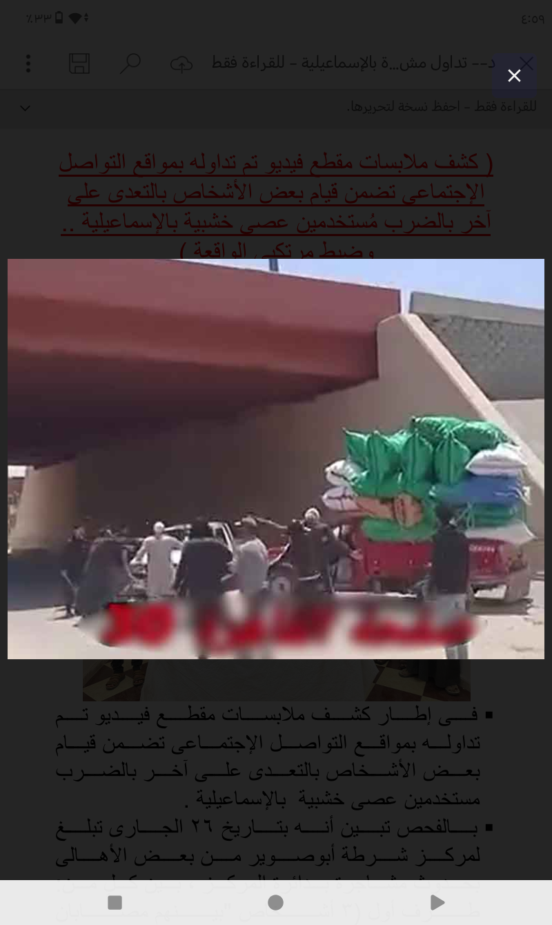 كشفت الأجهزة الأمنية بوزارة الداخلية ملابسات مقطع فيديو تم تداوله بمواقع التواصل الإجتماعى تضمن قيام بعض الأشخاص بالتعدى على آخر بالضرب مستخدمين عصى خشبية بالإسماعيلية .
