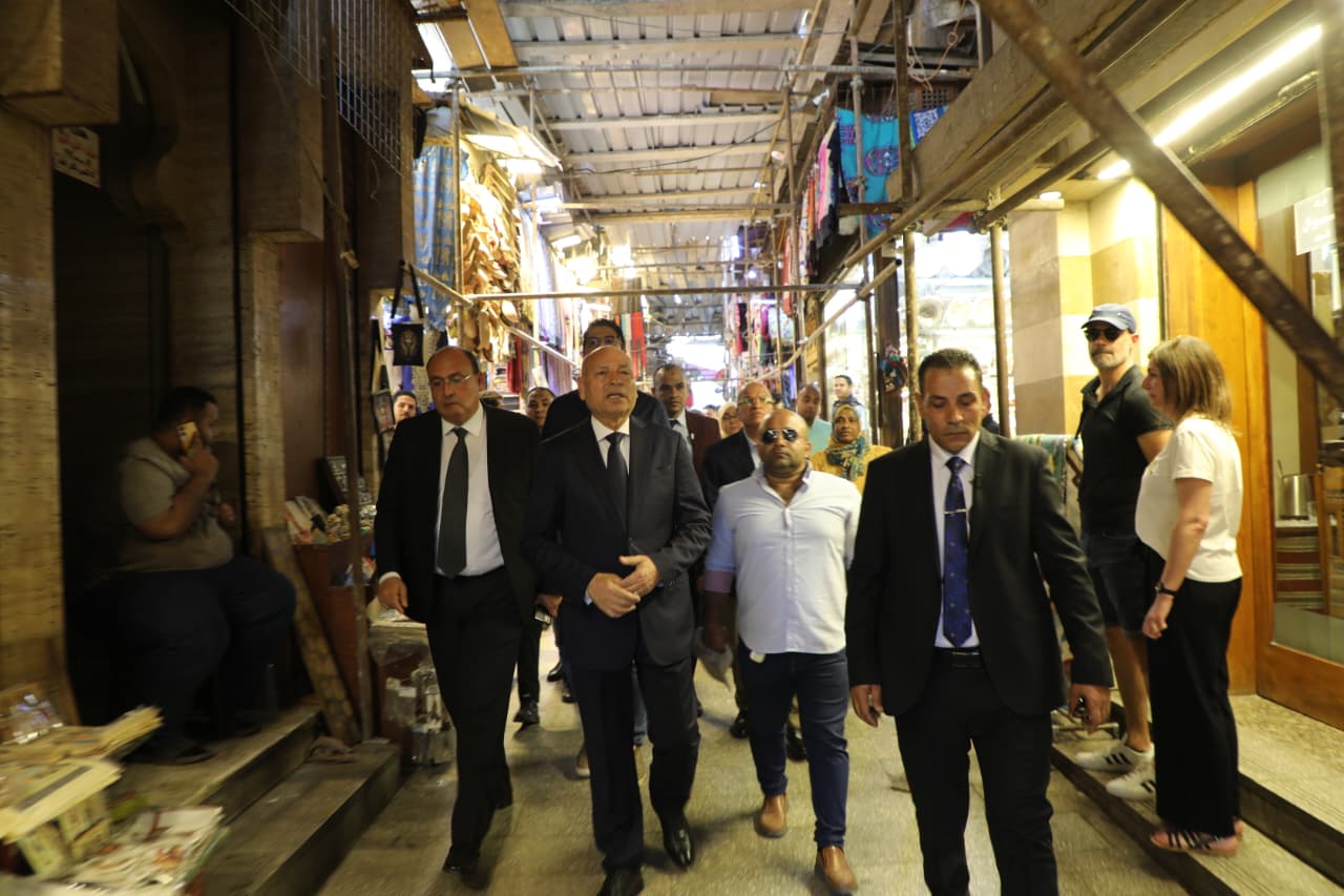 شملت جولة محافظ القاهرة منطقة خان الخليلي، التى يتم تطويرها بهدف رفع كفاءتها السياحية والخدمية بما يتناسب مع مكانتها التاريخية، ويساهم في تحسين تجربة الزائرين للمنطقة.