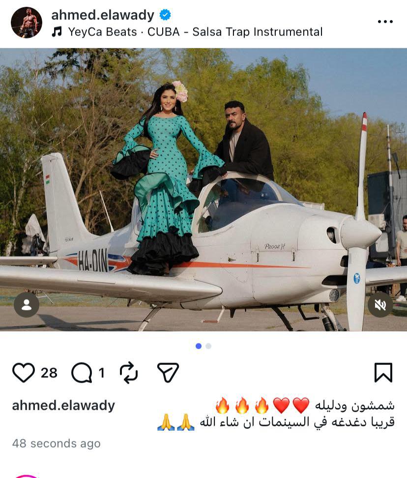 نشر الفنان أحمد العوضي، صورة جديدة من كواليس تصوير فيلم "شمشون ودليلة"، وذلك عبر حسابه الرسمي على موقع "فيس بوك"، ظهر فيها رفقة الفنانة مي عمر، تمهيدًا لعرض الفيلم في دور العرض السينمائي، قريبًا، ضمن أعمال موسم الصيف.