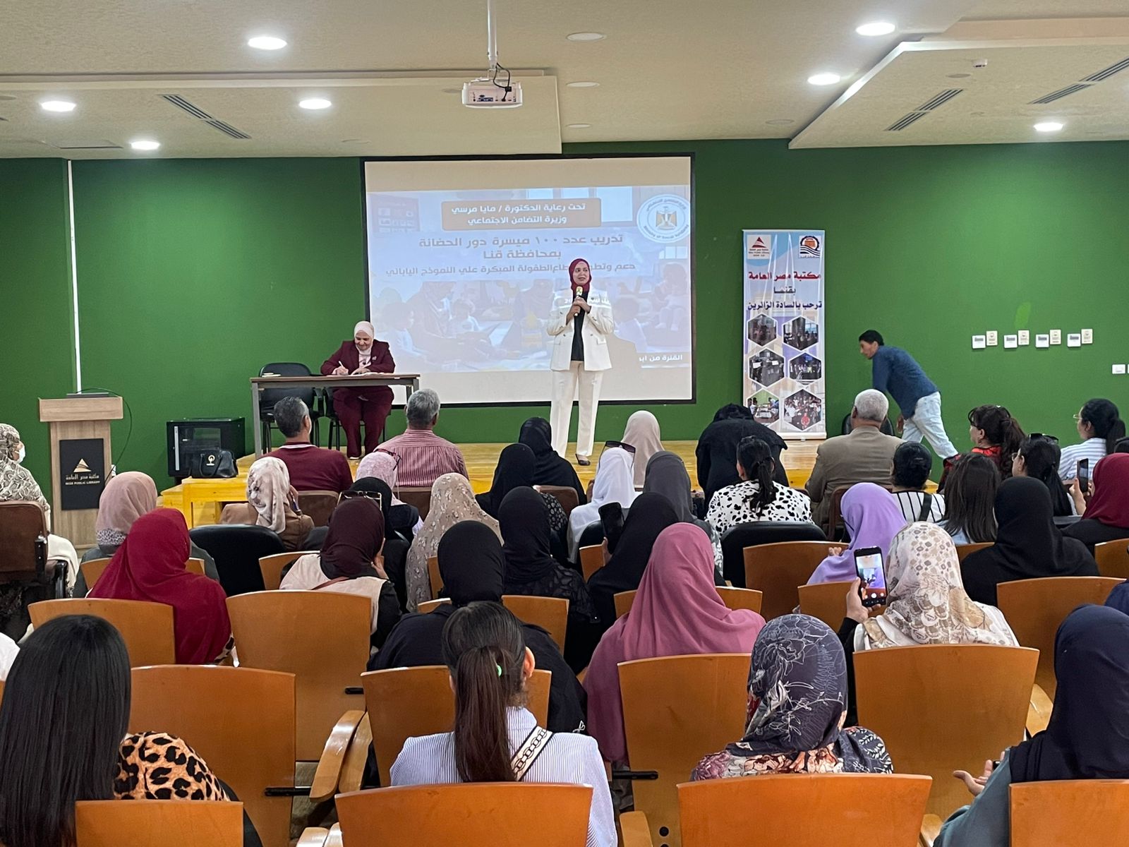شهد حفل التدشين الأستاذة حنان مصطفى رئيس الإدارة المركزية لشؤون الأسرة والمرأة، والأستاذ مجدي نجيب مدير مديرية التضامن الاجتماعي بمحافظة قنا، والدكتورة هانم عمر مدير عام الإدارة العامة لشئون الطفل، إلى جانب المنسقين المحليين من الإدارات الاجتماعية بالمراكز المنفذ بها التدريبات، وبمشاركة 100 ميسرة حضانة.