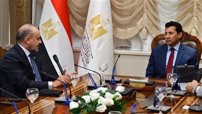 استقبل الدكتور أشرف صبحي، وزير الشباب والرياضة، صباح اليوم، السيد عبد المنعم الحسيني، رئيس الاتحاد الدولي للسلاح