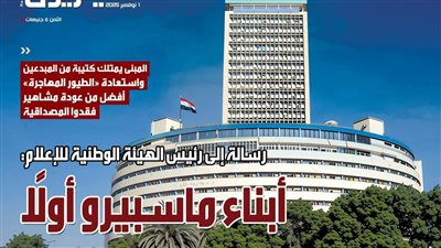 أصدرت مجلة الإذاعة والتليفزيون عددها الجديد رقم (4729) الذي من المقرر إصداره في الأول من نوفمبر 2025، وتناول عنوان المجلة : أبناء ماسبيرو أولاً ، في رسالة مباشرة إلى رئيس الهيئة الوطنية للإعلام