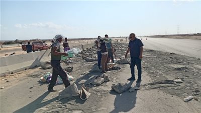 انقلاب تريلا محمّلة بـ 110 طن أسمنت على طريق الإسكندرية مطروح
