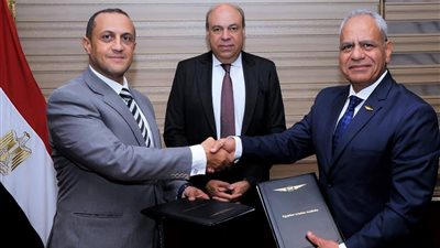 شهد الدكتور سامح الحفني وزير الطيران المدنى ، مراسم توقيع بروتوكول تعاون بين الشركة المصرية القابضة للمطارات والملاحة الجوية والأكاديمية المصرية لعلوم الطيران