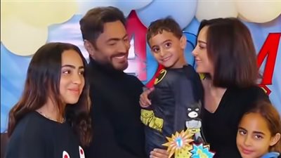 احتفل الفنان تامر حسني، بعيد ميلاد نجله آدم وذلك في حفل عائلي بحضور طليقته الفنانة المغربية بسمة بوسيل وابنتيهما تاليا وأمايا.