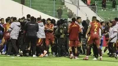 مباراة بلومينج وأورورو بكأس بوليفيا شهدت مشاجرة جماعية انتهت بـ17 بطاقة حمراء وتدخل الشرطة.