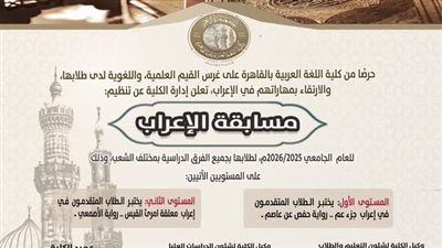 كلية اللغة العربية بالقاهرة تعلن مسابقة إعراب لطلابها بمكافآت وجوائز قيمة