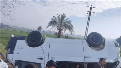 إصابة 6 ركاب إثر انقلاب ميكروباص بطريق كفر شكر