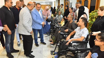 سلم اللواء دكتور هشام أبو النصر، محافظ أسيوط، عددًا من الكراسي الكهربائية المتحركة وماكينات الخياطة لعدد من المستحقين