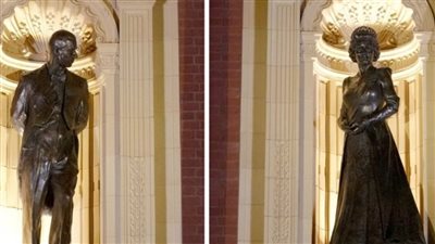 كشف ملك بريطانيا تشارلز الثالث والملكة كاميلا، النقاب عن تمثالين لوالديه، الملكة الراحلة إليزابيث الثانية ودوق إدنبره
