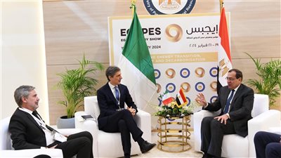 بحث المهندس طارق الملا وزير البترول والثروة المعدنية مع ستيفانو فينيير الرئيس التنفيذى لشركة سنام الإيطالية والسفير الايطالى بالقاهرة ميكيلى كوارونى