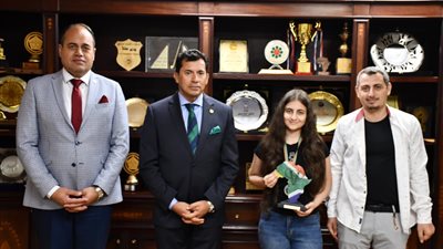 ألتقي وزير الشباب والرياضة الدكتور أشرف صبحي، اليوم بمقر الوزارة بالعاصمة الإدارية الجديدة، باللاعبة جوي.