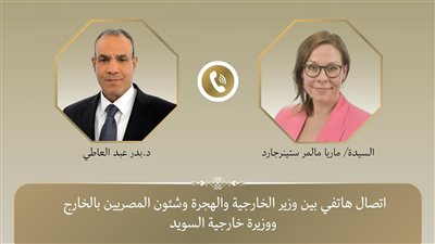 تلقى الدكتور بدر عبد العاطى، وزير الخارجية والهجرة، يوم الثلاثاء ١٨ فبراير اتصالاً هاتفياً من السيدة ماريا مالمر ستينرجارد