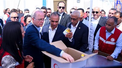 تفقد الدكتور بدر عبد العاطى وزير الخارجية ود. محمد مصطفى، رئيس الوزراء الفلسطيني، مركز الإمداد الغذائي المطبخ الإنساني