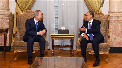 استقبل الدكتور بدر عبد العاطي وزير الخارجية والهجرة السيد ”بان كي مون“ السكرتير العام السابق للأمم المتحدة يوم السبت الموافق