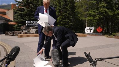 تداولت صفحات على مواقع التواصل الاجتماعي صور تزعم إنحناء رئيس الوزراء البريطاني أما الرئيس الأمريكي دونالد ترامب في قمة قمة السبع بكندا.