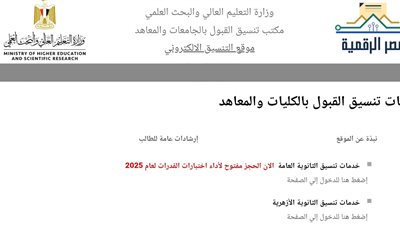 موقع التنسيق الإلكتروني الثانوية العامة منظومة التنسيق الإلكتروني الثانوية العامة والدبلومات تنسيق الجامعات الحكومية تنسيق المرحلة الأولى 2025 تنسيق الكليات العسكرية 2025
