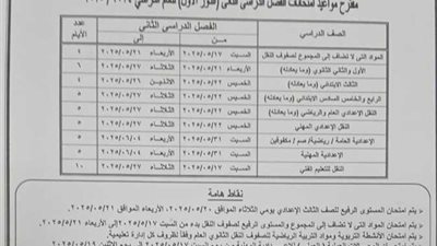 جدول امتحانات الصف الثالث الابتدائي الفصل الدراسي الثاني 2025 محافظة القاهرة… أعلنت مديرية التربية والتعليم بمحافظة القاهرة عن جدول امتحانات الصف الثالث الابتدائي
