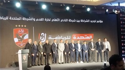 بدء مؤتمر توقيع اتفاقية تجديد الشراكة بين الشركة المتحدة والنادي الاهلي بإلقاء كلمة الاستاذ محمد الوزيري عضو مجلس