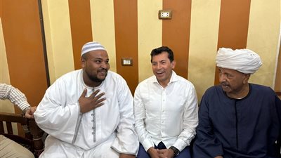 ألتقي وزير الشباب والرياضه خلال زيارته في اسوان بمدينة دراو قرية المنصورية وكان في استقباله العمدة سيد ابوالوفا