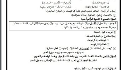 حددت وزارة التربية والتعليم والتعليم الفني، نماذج اختبارات مادة اللغة العربية للصف الثاني الاعدادي 2025