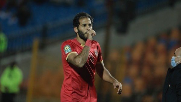 مروان محسن يصطدم برأس "بواليا" ويتعرض لإصابة دموية في مباراة الاهلي والبنك الاهلي