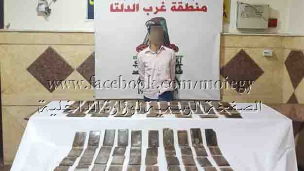 وبتفتيشه عُثر بحيازته على 100 طربة لمخدر الحشيش وزنت 10 كيلو جرام، ومبلغ مالي، وهاتف محمول، حال تواجده بدائرة مركز شرطة أبوالمطامير بالبحيرة.