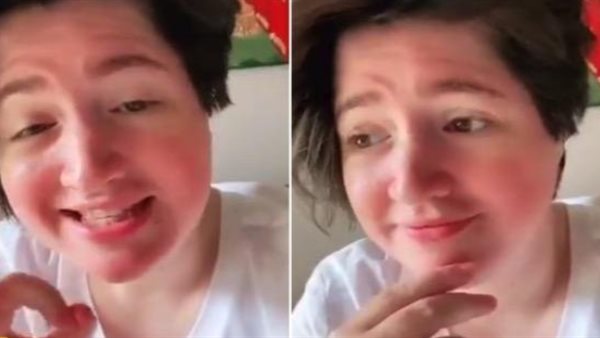 ظهرت خلاله كاتبة لكلمة "انفولو" على وجهها، في رسالة منها للمتابع