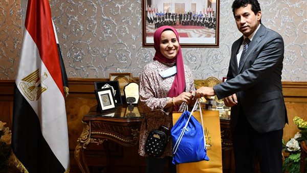 وزير الشباب يُكرم آيه عصام الدين بائعة غزل البنات (صور)
