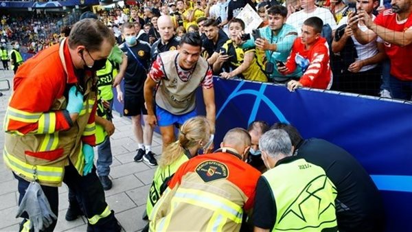 أهدى نجم مانشستر يونايتد كريستيانو رونالدو قميصه بعد المباراة لإمرأة من طاقم الأمن أصابها خلال الإحماء قبل مواجهة يانج بويز السويسري في دوري أبطال أوروبا، وأحرز البرتغالي هدفاً ولكنه لم يتمكن من تفادي الهزيمة في اللقاء 1-2.