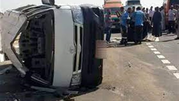 إصابة 4 أشخاص بحادث انقلاب ميكروباص على الطريق الزراعى فى بنى سويف