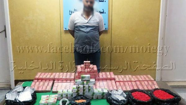 وتمكنت الأجهزة الأمنية بوزارة الداخلية، من ضبط عاطل لقيامه بممارسة نشاطاً إجرامياً فى مجال تصنيع وترويج العقاقير المخدرة، متخذاً من مخزن أسفل العقار محل سكنة وكراً للتصنيع، وعلى الفور تم استهداف المخزن المُشار إليه، وبتفتيشه عُثر على 50000 قرص مخدر لعقاريّ الترامادول والتامول، و13000 قرص مؤثر لعقار بريجا فالكس، و70000 قرص لعقار ميزوتاك، و19080 قرص لعقار سينترم.