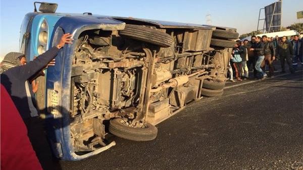 ننشر أسماء مصابي حادث انقلاب سيارة عمال بطريق الإسماعيلية الصحراوي