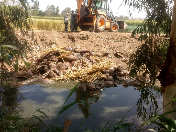 وقامت هندسة صرف طنطا التابعة للإدارة العامة لصرف الغربية برئاسة المهندسة نورا رشاد بإعدام 22 حمارا وجدوا نافقين ومسلوخين من جلودها علي جسر مصرف امتداد شوبر والتى تم ضبطها .