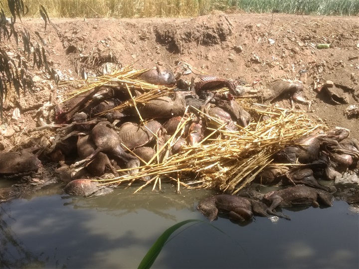 وأكدت الاهالي أن بعض تجار الجلود يلجأون الي ذبح الحمير للاستيلاء على جلودها عن طريق السلخ لبيعها لبعض المتعهدين الا انهم يقومون بترك جثثها دون التخلص الأمن منها مما يجعلها مصدرها لتلوث المياه خاصة في القرى وان تلك الظاهرة تتكرر في الآونة الأخيرة وضرورة محاسبة من يقوم بذلك.