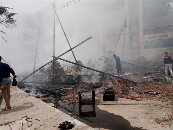 اندلاع حريق هائل داخل أحد معارض أهلا رمضان بالقناطر الخيرية (صور)
