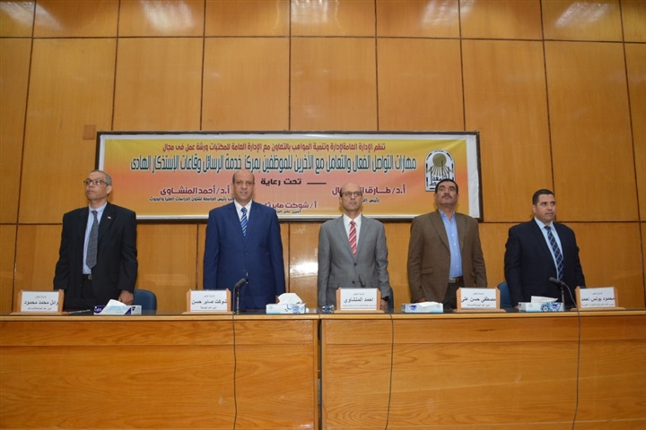 شهد الدكتور أحمد المنشاوي، نائب رئيس جامعة أسيوط لشئون الدراسات العليا والبحوث، انطلاق فعاليات ورشة عمل تحت عنوان "مهارات التواصل الفعال والتعامل مع الآخرين للموظفين بمركز خدمات الرسائل العلمية وقاعات الاستذكار الهادئ بالجامعة" التي تنظمها الإدارة العامة لإدارة وتنمية المواهب بالتعاون مع الإدارة العامة للمكتبات.